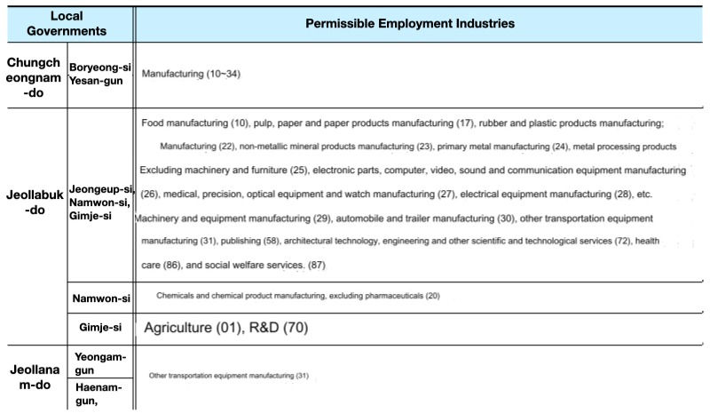 ▶ Place of employment must be located within the jurisdiction of the regional government eligible for regional specialized visa issuance*